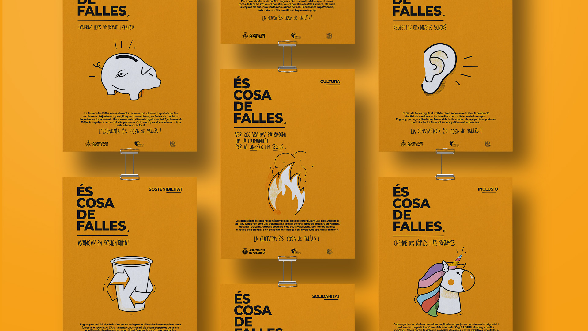 Durante las fallas el Ayuntamiento de Valencia quiso hacer una campaña informativa, para comunicar que las fallas, aparte de fiesta, calles cortadas y ruido, son cultura, economía, convivencia, sostenibilidad, inclusión, solidaridad y limpieza.